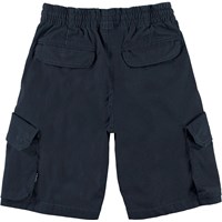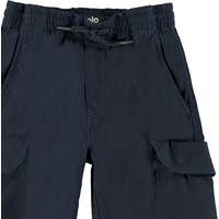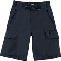 Argod is een donkerblauwe korte broek met grote zakken aan de zijkanten. Het heeft een elastische tailleband met koordjes voor een comfortabele pasvorm.