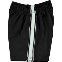 Arinos is een sportieve, zwarte korte broek met een witte streep aan de zijkanten.