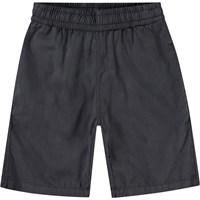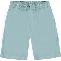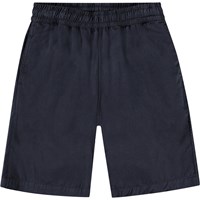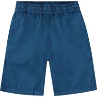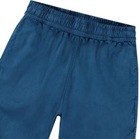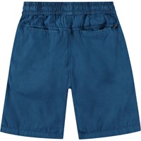 Blauwe short van biologisch katoen. De short heeft een brede elastische tailleband met een intern koordje, zakken aan de zijkanten en achterkant en een normale pasvorm.