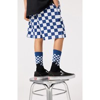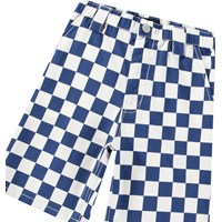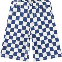 Geblokte korte chino van biologisch katoen. De broek heeft een elastische taille, knoopsluiting, drie zakken, brede riemlussen en een normale pasvorm.