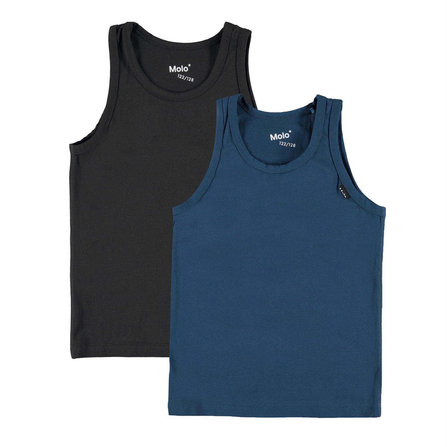 Pak met twee katoenen hemden: een in zwart en een in blauw.