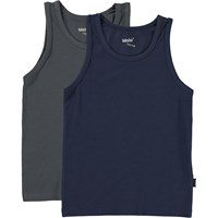 Pak van twee katoenen hemdjes. Een is grijs en de ander is blauw.