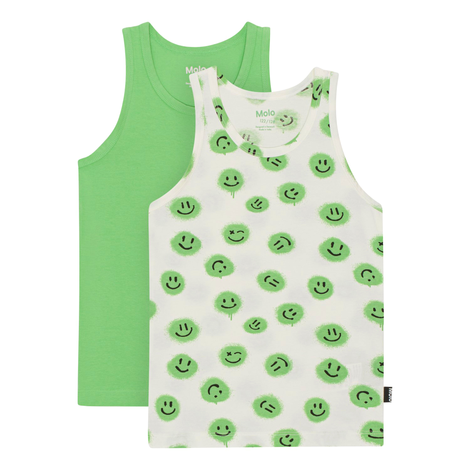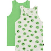 Set van 2 biologische hemden. De ene is groen en de andere is wit met groene smiley's.