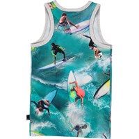 Jim is een hemd in de ‘surf' print, die gevuld is met grote golven en kleurrijke surfplanken.