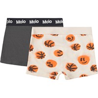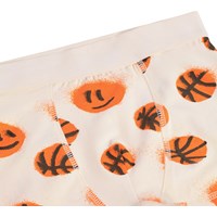 Duopak boxershorts gemaakt van zacht biologisch katoen met een brede elastische tailleband voor een comfortabele pasvorm. De verpakking bevat één grijze boxershort en één beige met een print van lachende basketballen.