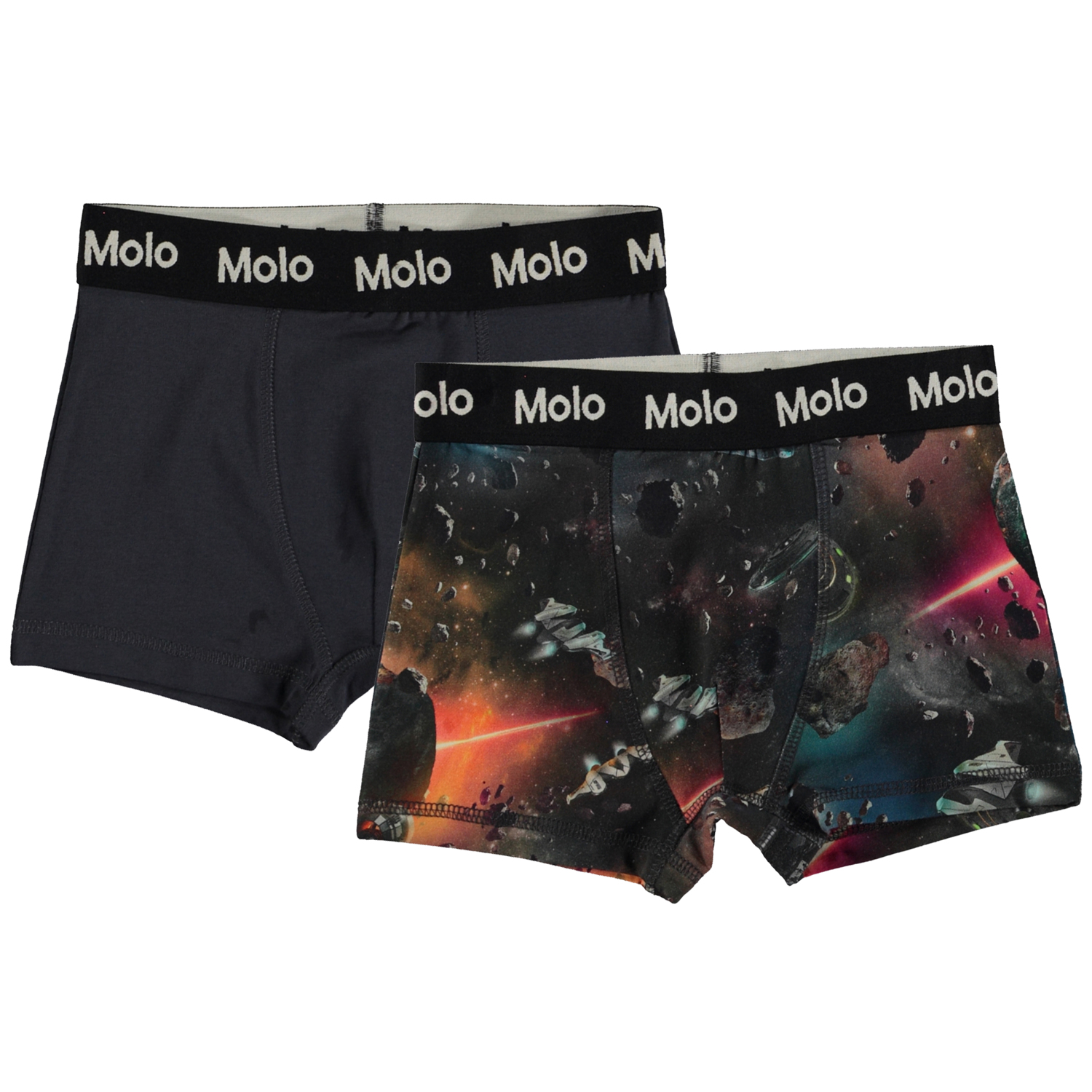 Duo pak van onze populaire Justin boxershorts. Deze versie heeft één donkergrijze paar en één met een print van het heelal in retrostijl. Het heelal is een plek met plezier en vol van heldere wilde kleuren. We volgen avontuurlijk ruimteschepen en UFO’s die op zoek zijn naar spektakels in de asteroïdegordel. De boxershorts zijn gemaakt van 100% zachte katoenen jersey. Je kunt deze duo pak boxershorts matchen met onze Jayden duo pak, dit zijn bijpassende hemden.