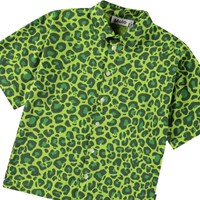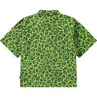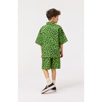 Oversized groen overhemd met luipaard print in zacht biologisch katoen met wijde korte mouwen, een klassieke kraag en knopen op de voorkant. Voor een complete set combineer je het met de bijpassende korte broek.