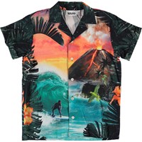Rodi is een blouse met korte mouwen met de 'Wildest Island’ print die een eiland toont dat bruist en levendig is.