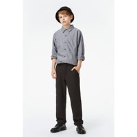 Romeno is een grijze klassieke blouse met een kraag en stiksels aan één kant voor een edgy look.