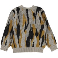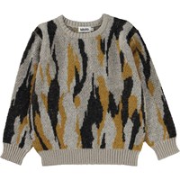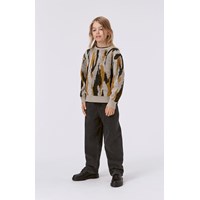 Grijze gebreide trui in een zwart met bruin patroon. Het is een organisch patroon in een grafische look. Deze trui is gebreid van een heerlijke, zachte wol/alpaca mix waardoor hij perfect is voor koudere dagen. De trui heeft een ronde hals met een rib, lange mouwen, rib aan de mouwen en onderkant en heeft een normale pasvorm.