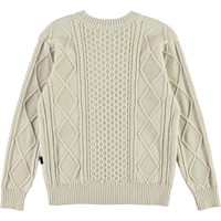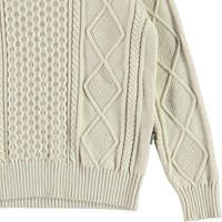 Borge is een gebroken witte gebreide trui in een prachtig kabelpatroon. De trui is gemaakt van 80% katoen en 20% wol.
