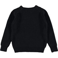 Bosse is een zwarte gebreide katoenen trui in een ribpatroon. Dit Molo-product is gemaakt van biologisch katoen.