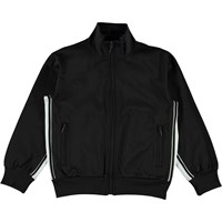 Maboc is een zwarte trainingsjas met witte details aan de zijkanten. De jas heeft ritszakken en een ritssluiting aan de voorkant.