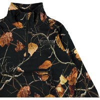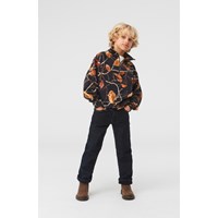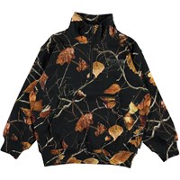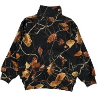 Mads is een zwarte sweater met hoge kraag en een ritssluiting. De sweater heeft een mooie print van gouden bladeren. Het heeft een ronde hals en een elastische ribboord aan de onderkant en mouwen.