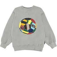 Magni is een grijs gemêleerde sweater met een print van een voetbal in prachtige kleuren.