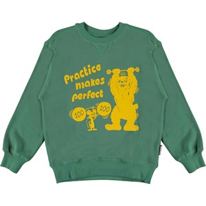 Het draait allemaal om trainen, omdat ‘Practice makes perfect'. Kijk naar de sterke muis die veel gewicht op het Mann trui beweegt. Het is in groen met een gouden print.