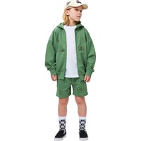 Groene hoodie gemaakt van zachte katoen met een kangoeroezak, rits en ribboorden rond de mouwen en onderkant. De hoodie heeft een ruimvallende en relaxte pasvorm met op de voorkant kleine geborduurde prints.