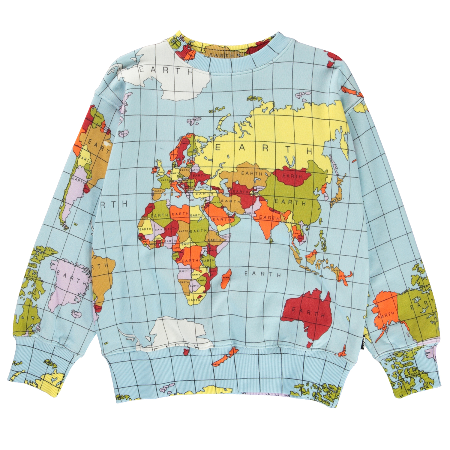 Mattis is een lichtblauwe sweater met een atlas print in prachtige kleuren.
