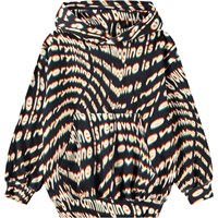 Zwarte hoodie van biologisch katoen met een capuchon, buidelzak, geribbelde boorden en een gevoerde binnenkant, waardoor het heerlijk, zacht en warm is om te dragen. De hoodie heeft een oversized pasvorm en een print aan de voorkant geïnspireerd op virtual reality, vooral VR-brillen, die je naar een hele andere wereld kunnen brengen.