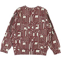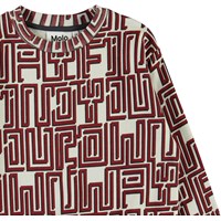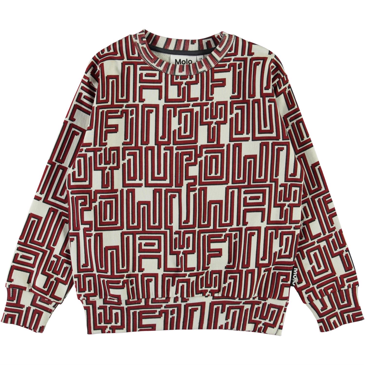 Find your own way 'staat in de rode doolhofprint op de Mik trui. Probeer je weg te vinden.