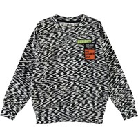 Mik is een trui in de zwart-witte ‘Interference' print. De trui heeft kleine, gekleurde vlekken op de voorkant, waarop staat: ‘The future is wild'.