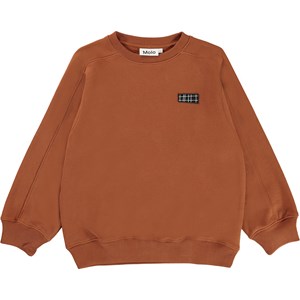 Mir is een bruine sweater met een Molo logo op een borst. Draag de sweater met het bijpassende joggingbroek.