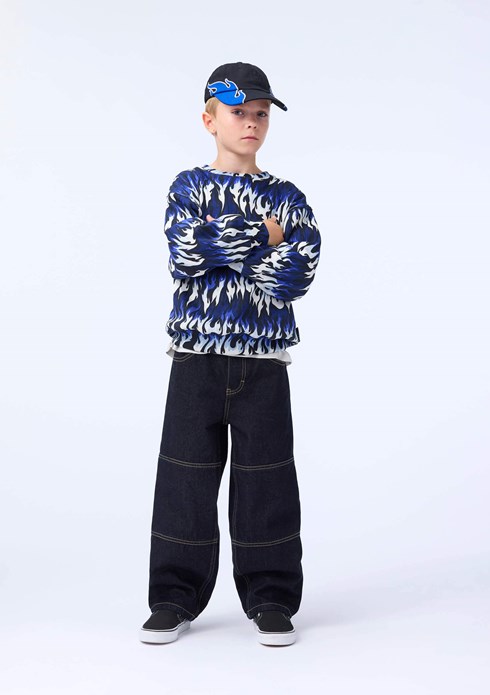 Zwarte sweater gemaakt van zacht biologisch katoen met een alien print. De sweater heeft ribboorden rond de hals, mouwen en taille. De sweater heeft een ruimvallende pasvorm.