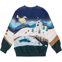Multikleurig sweater van biologisch katoen met een gevoerde binnenkant, waardoor het zacht en warm is om te dragen. De trui heeft een ruime pasvorm, ronde hals, geribbelde boorden en een print geïnspireerd op ouderwetse arcade-spellen met lichtjes pixelachtige personages. Kijk of je sleutels of diamanten kunt vinden en ga naar het volgende level.