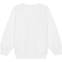 Witte biologische sweater met op de voorkant een print van een met graffiti gespoten buitenaardse toerist die heeft gekregen waarvoor hij kwam: een ijsje! De sweater heeft een ronde hals en ribboord rond de hals, de mouwen en de onderkant. Het heeft een ruimvallende pasvorm.