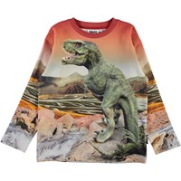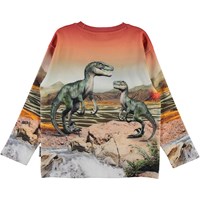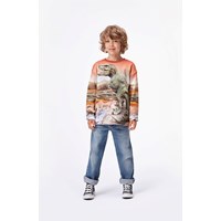 Mountoo is een shirt in prachtige aardtinten en met een print die je terug in de tijd meeneemt naar een ander landschap waar de T Rex rondzwierf. Op de voorkant van het shirt zijn drie grote leeuwen verzameld. Het heeft een ronde hals en elastische ribboorden aan de mouwen en onderkant.