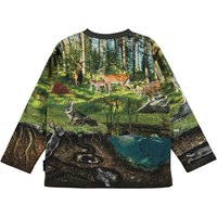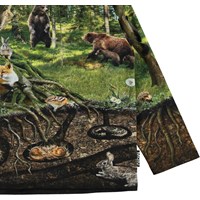 Mountoo is een shirt met lange mouwen met een print van bosdieren. Kijk welke dieren zich boven en onder de grond verstoppen.