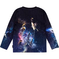 Kleurrijke sweater van biologisch katoen met een ronde hals, geribbelde zoom en lange mouwen. De sweaterheeft een normale pasvorm en een gevoerde binnenkant, waardoor het zacht en warm is om te dragen. De print is geïnspireerd op de prachtige James Webb Space Telescope en toont een telescoop in de ruimte tussen sterren en sterrenstelsels. Stel je voor welke beelden hij terug kan sturen naar de aarde.