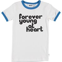 Forever young at heart 'is de verklaring op het Radio t-shirt. Breng je speelse kant naar voren en blijf voor altijd jong in dit coole t-shirt. Het is een witte t-shirt met blauwe randen aan de mouwen en hals.