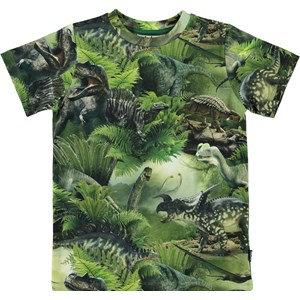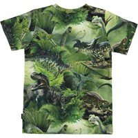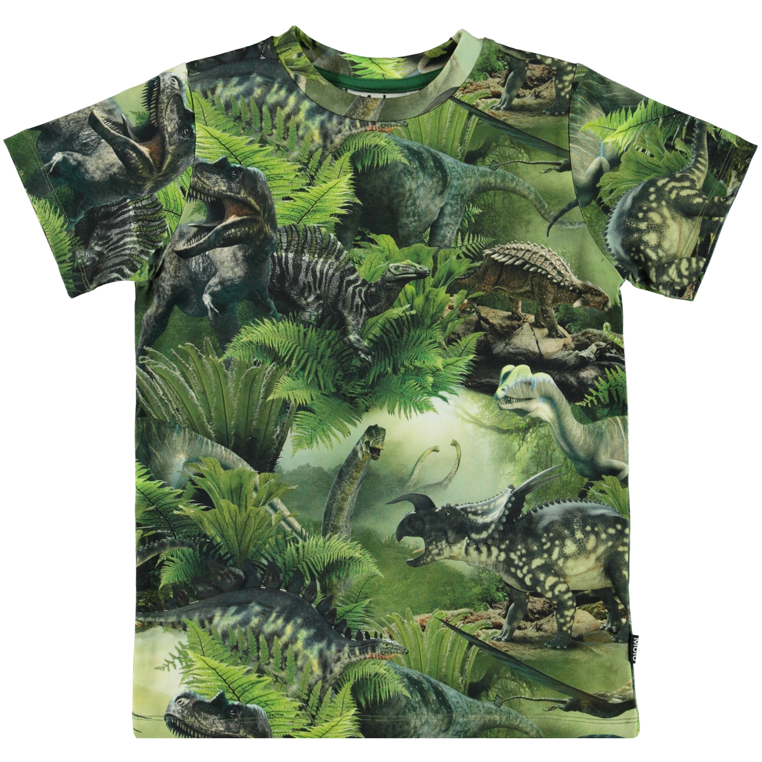 Ralphie is een groen t-shirt met een print van verschillende dinosaurussen.