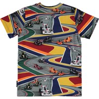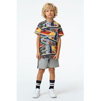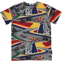 Het t-shirt van Ralphie heeft een totale print van raceauto's.