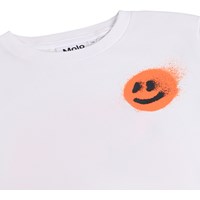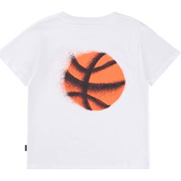 Wit T-shirt van biologisch katoen met korte mouwen en een geribde halslijn. Het T-shirt heeft een losse pasvorm en een print met een basketbal.
