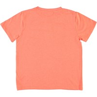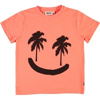 Rame is een koraalrood t-shirt met een smiley print met palmboomogen.