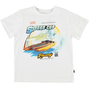 Rame is een wit t-shirt met een print van een speedboot en met de tekst “Speed Cup Racing”. Het t-shirt is van 100% katoen.