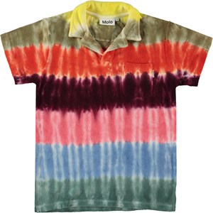 Randel is een zachte badstoffen polo met regenboog strepen. Het t-shirt heeft een kraag en korte mouwen. Draag het met de bijpassende korte broek.