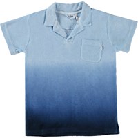 Badstoffen poloshirt van 100% biologisch katoen met dip-dye effect in blauwtinten. Het shirt heeft een ruime pasvorm en korte mouwen, een polokraag, een borstzak en kleine splitjes aan de zijkant. De zachte badstof kwaliteit en de ruime pasvorm maken dit shirt ideaal om te dragen op het strand of bij het zwembad.