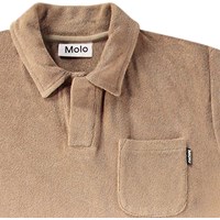 Bruine en beige polo van biologisch katoen badstof met korte mouwen en een kraag. De polo heeft een ruimvallende pasvorm, een borstzakje en zijsplitten. Combineer de polo met de bijpassende short voor een complete set.