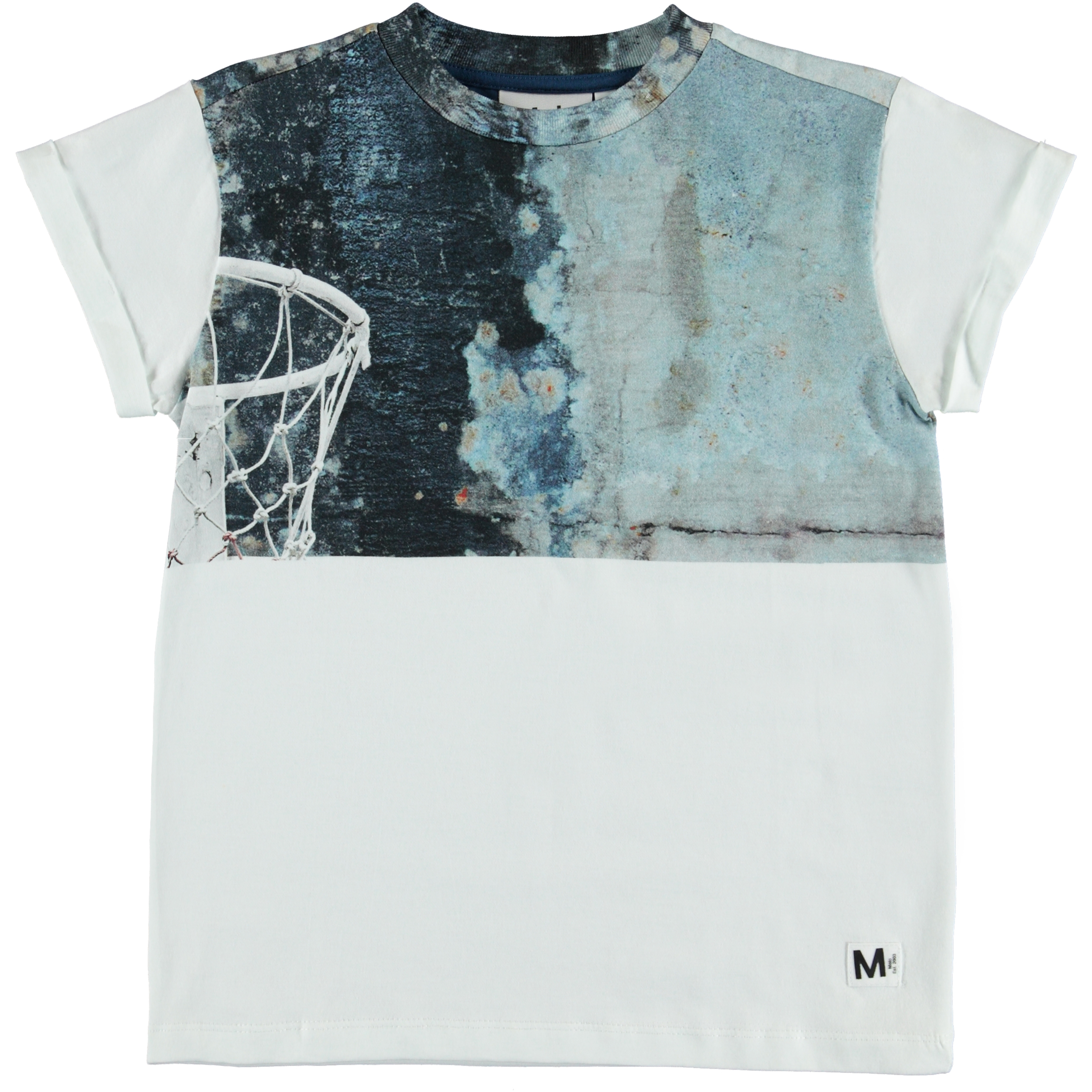 Randon is een t-shirt met een basketbal bedrukte voorkant en mouwen. Het onderste deel is in effen wit. Het t-shirt is gemaakt van 100% katoen en heeft opgerolde mouwen.