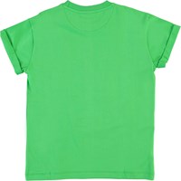 Randon is een groene t-shirt met op de voorkant een print van palmbomen en een zonsondergang. Het t-shirt is van 100% katoen en heeft oprolbare mouwen.