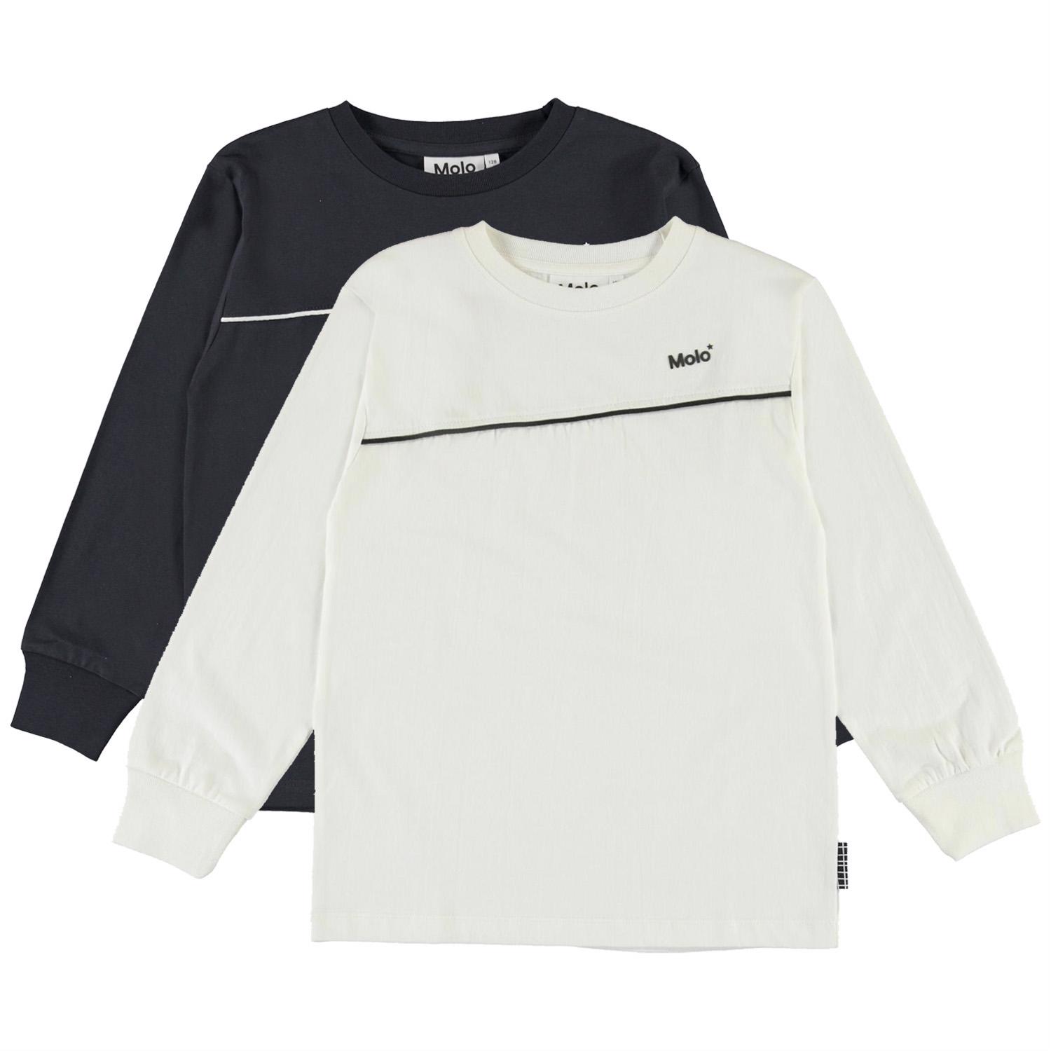 Rasmono is Molo's nieuwe en onmisbare basis shirt met lange mouwen. Dit shirt wordt geleverd in een 2-pak met een zwarte en een witte shirt. Het heeft een ronde hals, het logo en een asymmetrische streep op de voorkant.