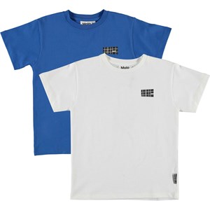 Rasmus is een van Molo's nieuwe basis t-shirts met een logo op de linkerkant. Dit is een 2-pak met een blauw en een wit t-shirt.