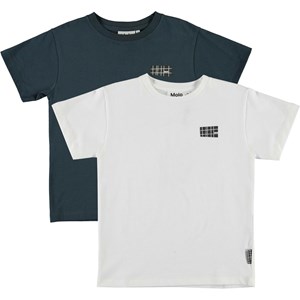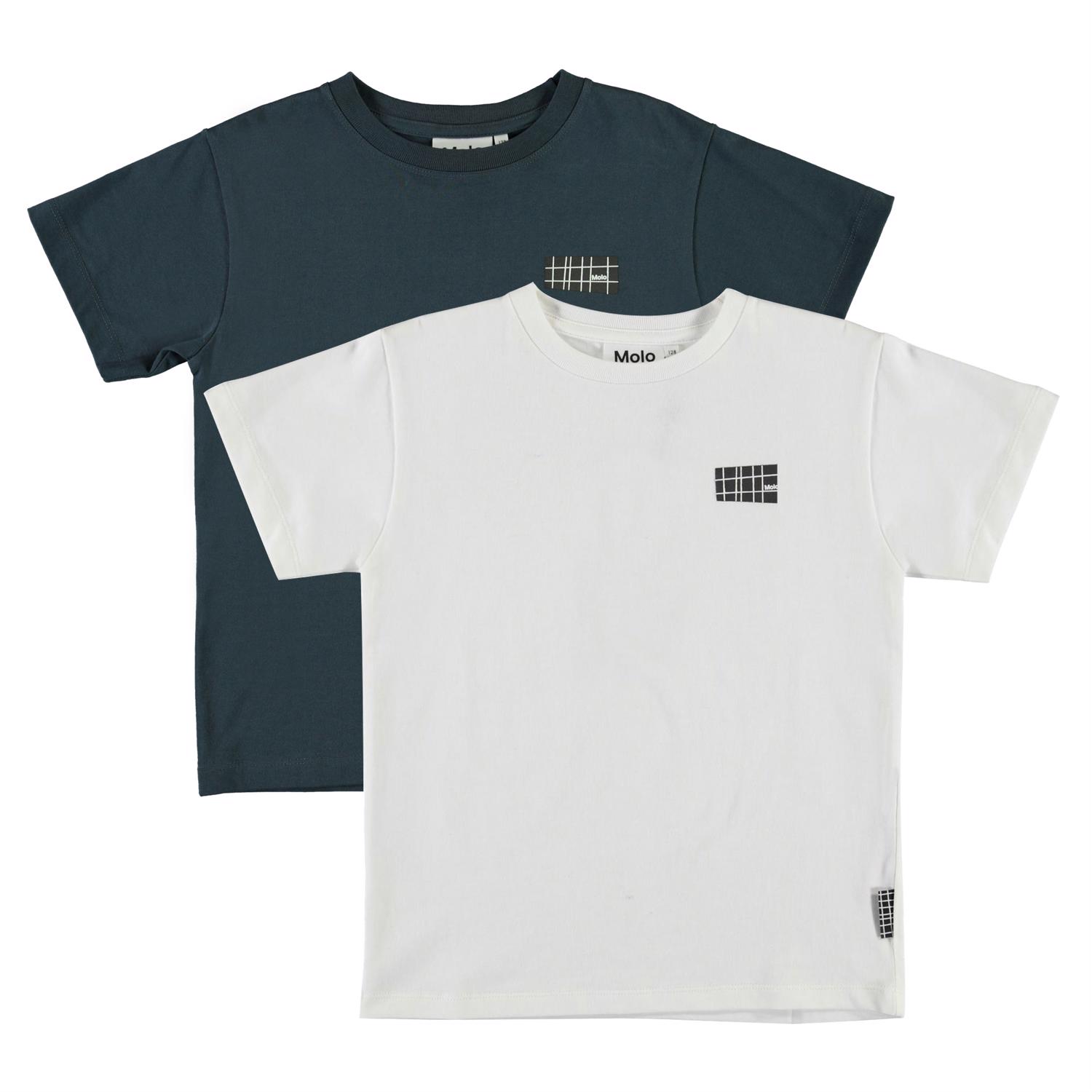 Rasmus is een van Molo's nieuwe basis t-shirts met een logo op de linkerkant. Dit is een 2-pak met een donkerblauw en een wit t-shirt.