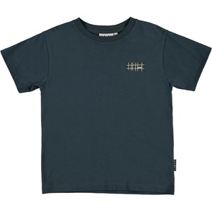 Rasmus is Molo's nieuwe basic t-shirt in het donkerblauw met het logo op de linker zijkant.