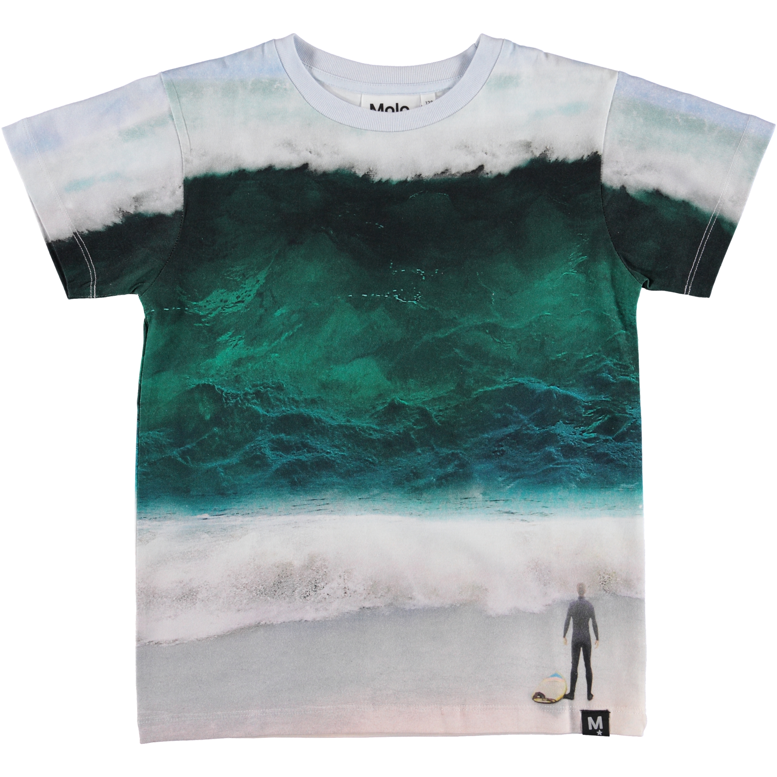Soms kunnen golven enorm lijken, zoals op het katoenen Raul t-shirt, met zijn gigantische golf en golfkoppen print.