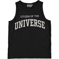 Rave is een zwart hemdje met op de borst de tekst 'Citizen of the universe'.