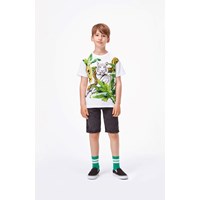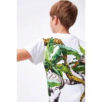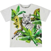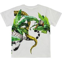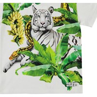 Raveno is een ruimvallende wit t-shirt met een print van een witte tijger en een grote slang.